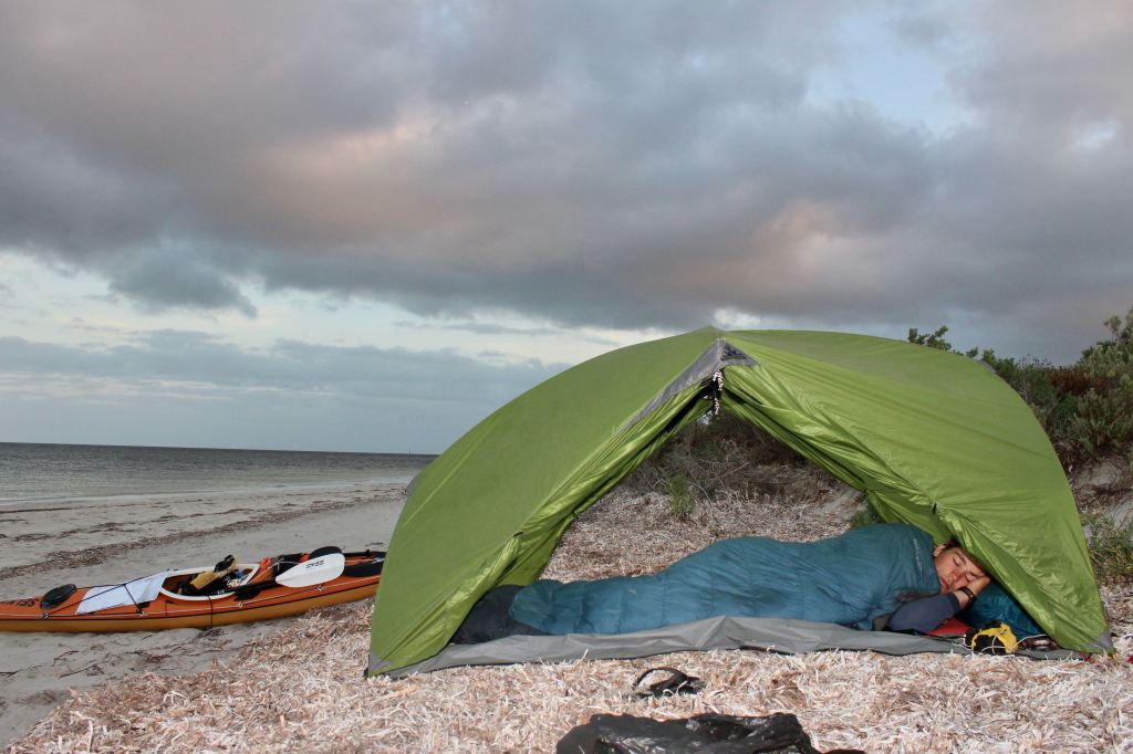 I did make it in the end to Port Moorowie after Will and Ferg kindly waited for me, once again confirming Dory was right and that if you just keep swimming paddling in this case, you’ll get there eventually. Ferg and Will actually had a great day too with the rolling swell and were even speeding up to try and surf on it! Bastards! Once at Port Moorowie I had my own ‘joy’ though and realised my hatch was leaking so got straight on to any sea kayakers number one priority when finished for the day… dry your clothes! This simple task is the first step in de-briefing with your internal monologue about the days events and started the recovery process.