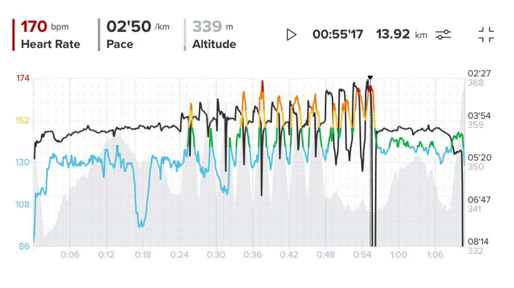 Same elevation and time and distance as my previous Wednesday mid-week long run of the fire track out at Dutchman’s but this route has a different style (up then down, not updownupdownupdown forever) more specific to the course in Austria, hence a better training route.