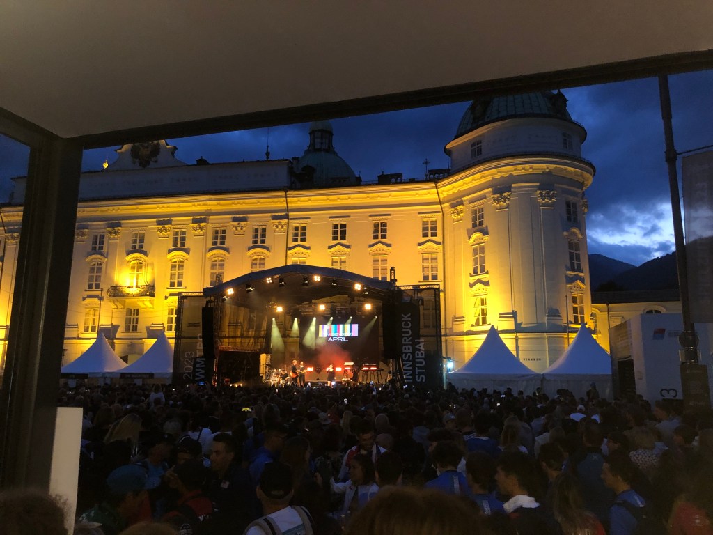 Come 4pm-ish and all the racing was in the bag. Quick nap to recover and then I popped downstairs to see who was around before we trotted out for the Closing Ceremony. New mate Nath and two of his Aussie mates were in the foyer and provided good banter for half an hour plus the opportunity to ask one of them about their life in Munich. This bloke had flown to Munich with no job on a 90-day VISA hoping to land something in that period and do the Europe thing for a bit. A bit scary he said at the time but it all worked out and was pretty straightforward. And here he was spending his Saturday in Innsbruck because it was only a 2 hour train ride away. That could be the life…