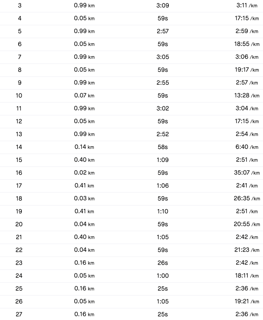 This led to Tuesday morning’s session where I repeated what I did last Friday. Warm-up, 6*1k, 4*400, 4*160m, warm down. I improved my paces and felt like I worked hard. A simple recipe of a good run. The optimism was building in my fitness. If I can squeeze out km reps at these paces, imagine what I could do for a 5km now. The ankle pain didn’t bother me in these hard efforts but it was a bit sorer afterwards. No different to how it had been feeling for the past two weeks.
