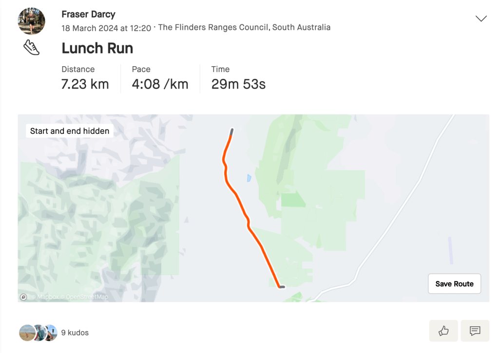 This wasn’t great for my confidence but I reasoned it was important to continue loading my tendon in probably a safer, disjointed manner, than a straight continuous run. I jumped on the bike for an hour afterwards and it was my first ride since the weekend prior. The difference in pain between this ride and the last one five days before was immense showing that even though I hobbled through 4km’s about an hour before, I was still progressing overall in my return back to full strength. I watched the Bombers win their first match of the season for the majority of the afternoon and then used the motivation from that for another ride. I kept chasing the high from that ride and the fact it was a Saturday afternoon and I wasn’t working at the pool to head out for another run. I got greedy here and went to go for 6km’s but instead turned early at 2.5km’s to only make it 5km’s. It still felt better than the morning run.