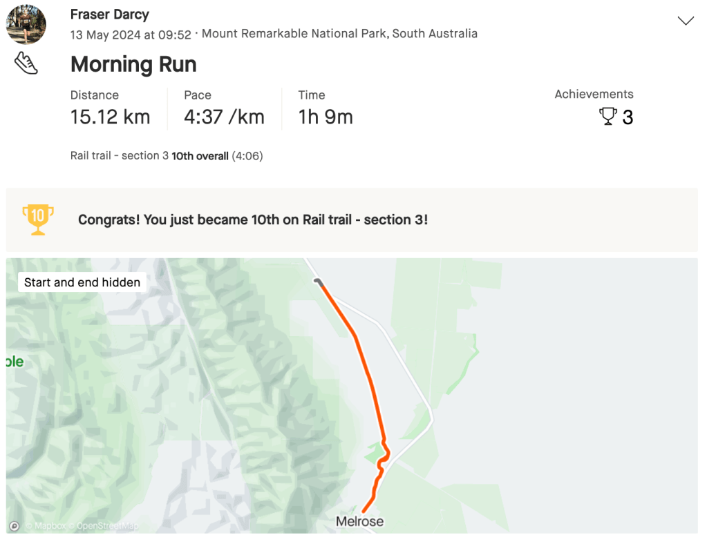 Then of course we reach the stage of the weekly recap where things become a little bit more exciting. I obviously went to Adelaide at some point, but when? After a Friday tempo at home in the North Quorn Parklands? Or did I travel down to be in Adelaide for a RunAsOne tempo on Friday morning? Or maybe I drove down for Friday night pizza night at the Darcy Boarding House?