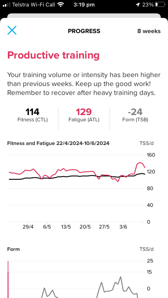 After a number of days of being actively quite busy this Monday night into Tuesday morning’s session was the final act before I got a rest day for the rest of Tuesday. As a result I was a little tired and not as energetic as I was on the weekend for my Tuesday morning session this morning but I still got it done despite that and despite an increasing headwind. I opted for 8, 1km reps with 60 seconds rest between. The pace I had in mind, was an average of 3:10/km considering I had stacked a few big days of activity together in a row. The first one, uphill and into a slight breeze, was just under 3:10. The next, downhill with a tail wind, was just below 3:00. This is usually what happens when there is no wind and I proceed to drop a few more 3:00 flat reps up and down the hill having warmed-up properly with the first two. This morning though, this session went the other way, the third rep back up the hill and into the wind went at 3:13. Back down the hill was 2:56. Back up the hill was 3:15 and I was feeling very cooked. Just get through it. Down the hill the legs didn’t feel fast but I still ran 2:53. One final rep up the hill and into some pretty windy conditions was measured at 3:20. Lastly, the downhill rep with the biggest tail wind of all time was the quickest km rep I’ve ever done at 2:47. And that was me cooked for the rest of the day pretty much. Since that session this morning I’ve been dragging out my jobs list across the whole day and have just ticked off a big one by putting this weekly blog together. Wahoo… now I can I have a nap… again.