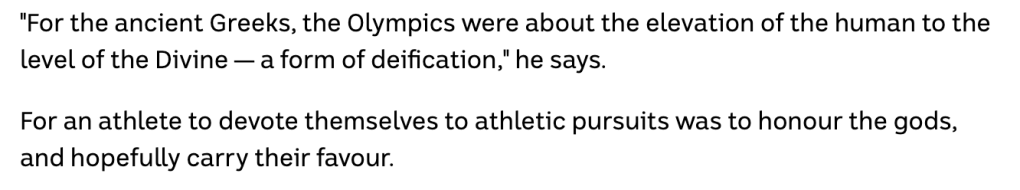 I’m not an Olympian or even close to being one but that doesn’t really stop me from devoting myself to athletic pursuits. Reading little passages like this does give me a sense of yeah, it’s not a stupid thing to be so focused on running and not working that much, I’m just honouring the gods after all.