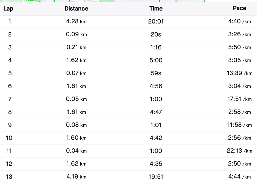 Tuesday was a session with RunAsOne where I was helping coordinate instead of actually training. There were some other coaches also keen to help so it was pretty straightforward in the end. The crux of the morning was working out when I should eat my breakfast. Before ‘coaching’ and risk getting hungry again before my own 9:30 session or after ‘coaching’ and risk it being too close to my own session. I opted for before and by the time 9:15 rolled around I felt I had timed it perfectly. I was again training with Jacob and Adam, the main characters from last week’s training sessions, and our session was 5*Mile repeats (1.6km) with only 1 minute recovery progressing from 5:00>>4:40 per mile over the course of the session. That’s 3:08/km to 2:55/km pace.