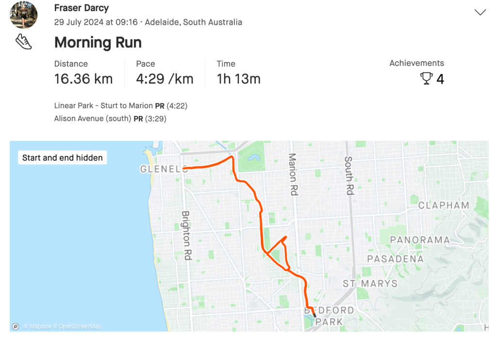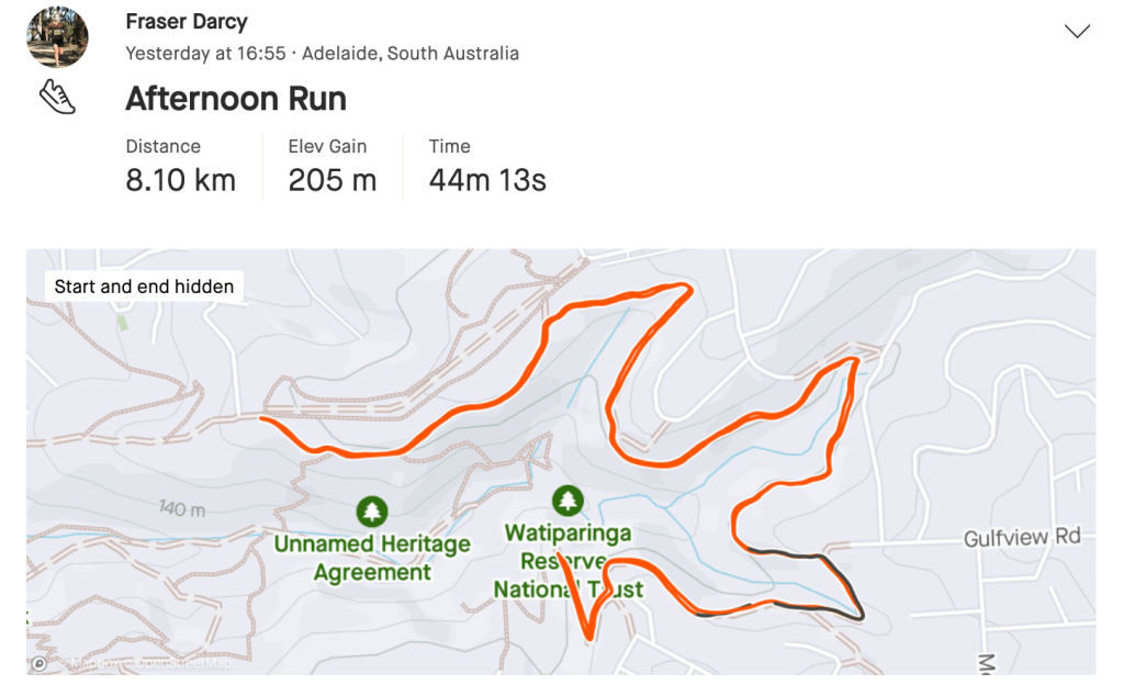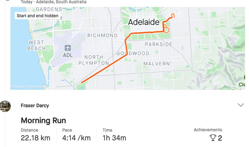 Mentioning my hip issues to start with is a great way of keeping another solid week of training humble and within context though. I did what I’ve done every Monday for the last three weeks and ran along the Sturt River for an easy 16km. It all felt pretty easy too as I wore a relatively new pair of Asics Novablast’s to jog along in. Being relatively new, they have a bit more cushioning and hence were going to protect my sore hip a bit more. They did, I ran well and then I jogged a pretty easy afternoon run as well on Monday.