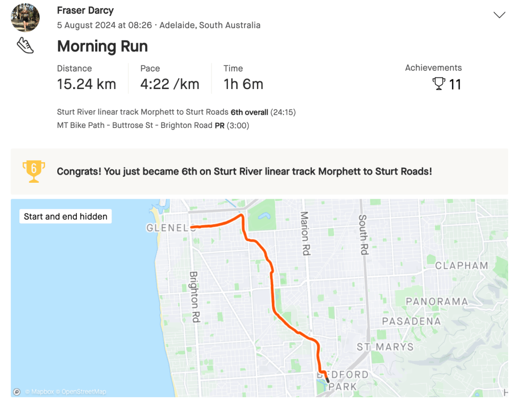 Of course if you want to know how that plan eventuates, read along next week to find out. Until then, thanks for reading this week and thanks to those who flicked me a text or commented on my Strava saying congrats, very appreciated of it!