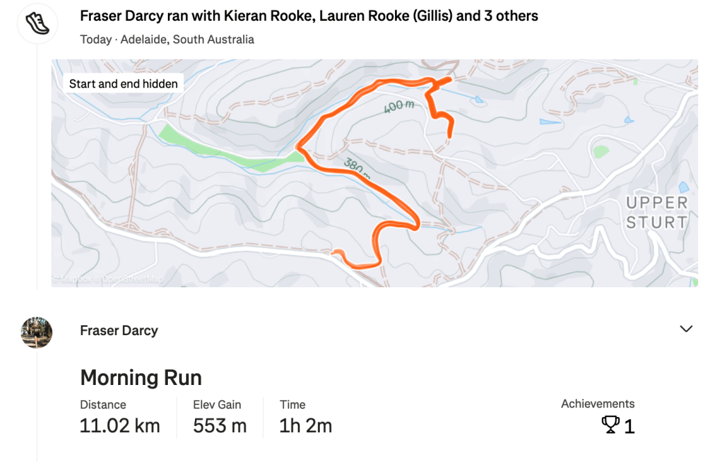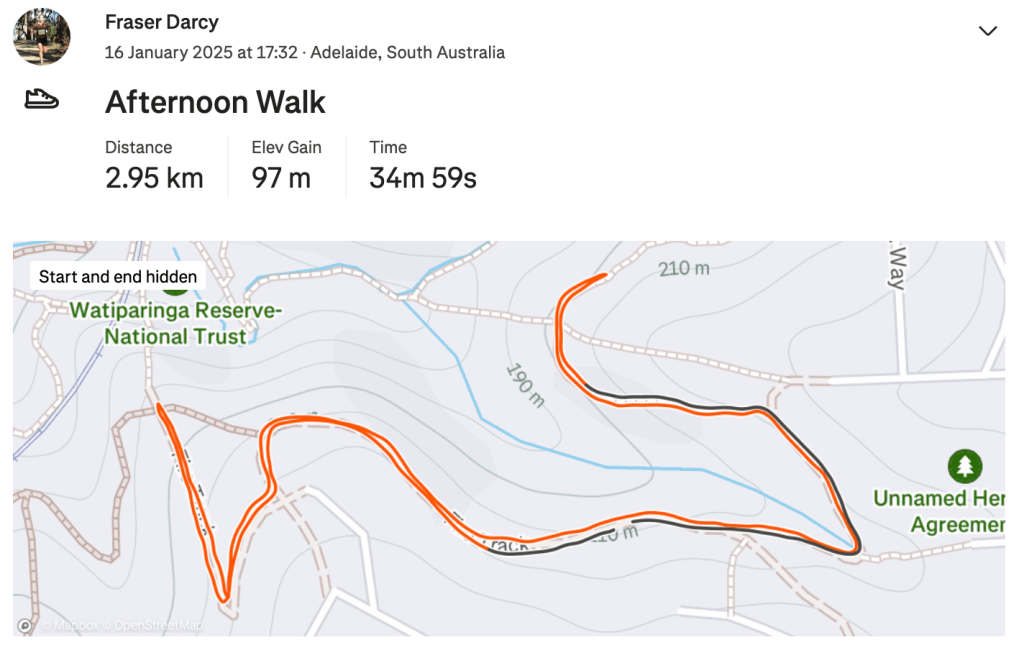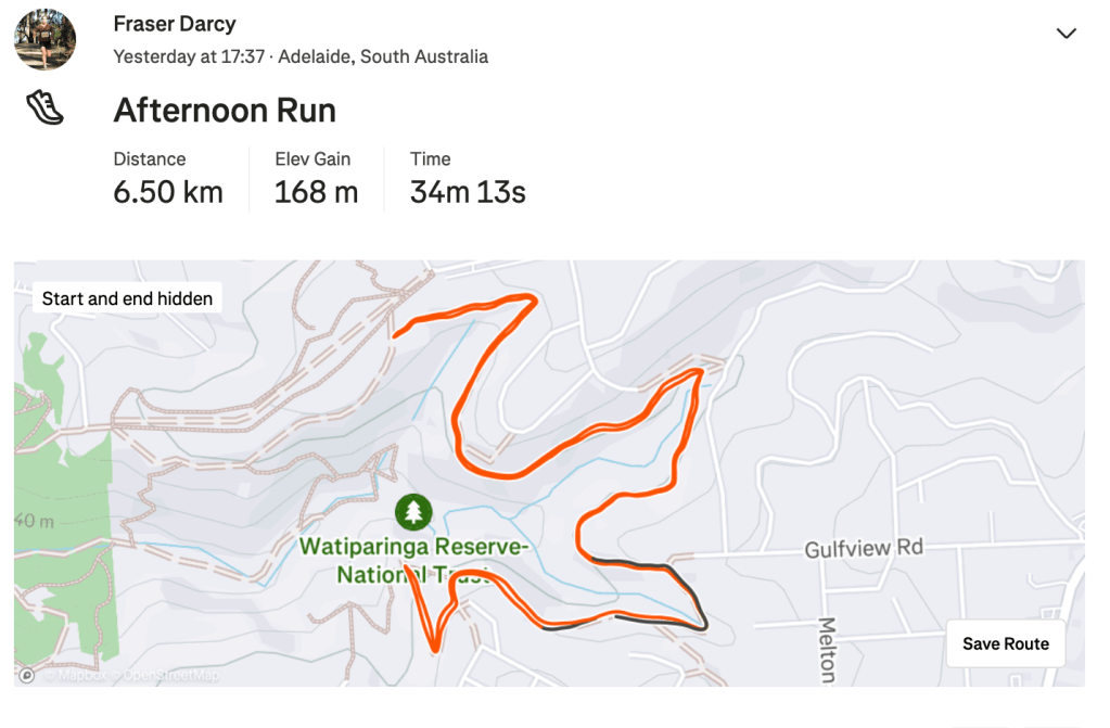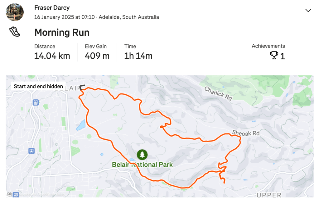 And I was still sore on Thursday as well. I ran my normal 13-14km loop at Belair for the first time in a week and a half and scoped out this Saturday’s RAO trail session. Being sore from the gym made this run pretty tough or maybe it was the culmination of ‘relaxing’ and not adding 2km’s to my run for the first time in four days post marathon. My run still went for 75 minutes making it longer but mentally, it felt easier in terms of the distance covered. Weird but that’s just the way my brain interpreted it. I had plenty of free time on Thursday having caught up on work and life admin in the past couple of days so I used most of Thursday to just relax. I didn’t even bother with a double in the afternoon realising how fatigued I felt. I did wonder if this was the marathon catching up with me five days later but just put it down to having a clear schedule and being lazy.