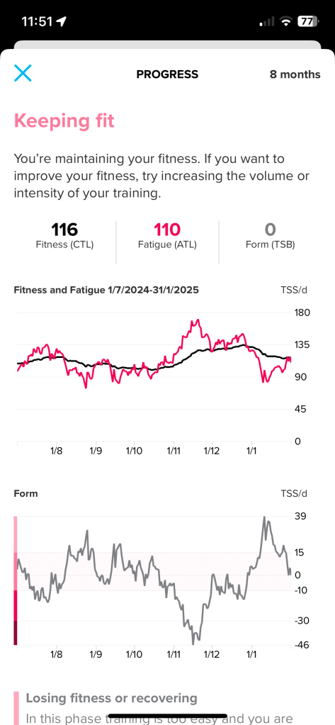 At first, that scares me a little bit but then I sit with it for a few seconds and realise that means that intrinsically I have placed some challenging expectations on myself to perform well as a runner. Which, when I sit on that thought a little bit longer, means by the end of it, even if I don’t reach those expectations, I’ll still come out as a better runner for having set some challenging goals for myself. With that little preface of the next few weeks, this weekly recap was all about putting in the first real solid training week of three full sessions together since the start of 2025.