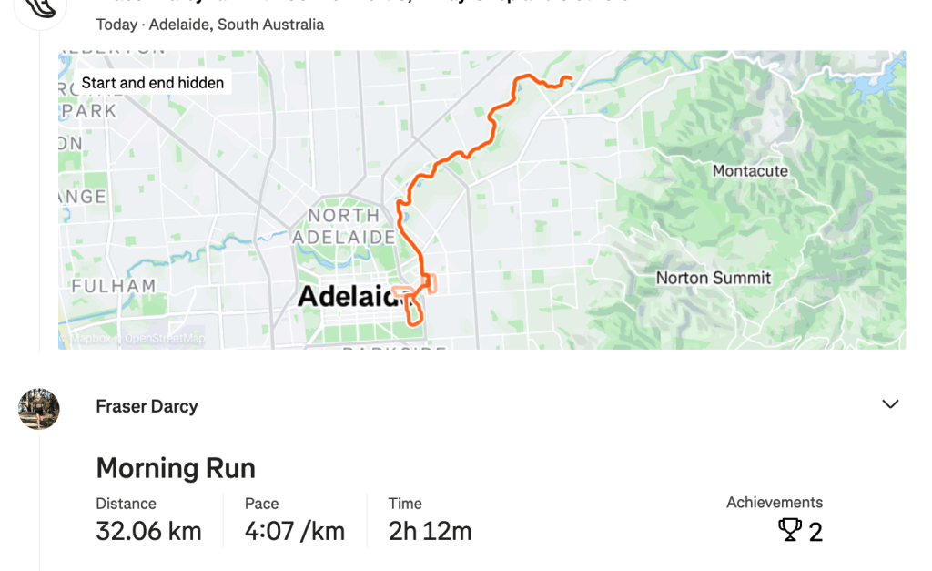 The normal training week started like many of my other normal training weeks, with a 14km run on Monday at Belair utilising a more hilly loop. I’d shied away from this loop while I freshened up for marathon season so it was good to get back to it. I was very tired though following the Sunday long run the day before which I know sounds odd given I should be very long run fit coming off two marathons but that’s just the way it was. Luckily I didn’t have too much on during Monday and I was able to get what I needed done plus do plenty of relaxing. I fit in some mobility, went for an arvo easy run along the Sturt River to incite some more energy into myself (changing the location of a double run can easily help motivate you) and then jumped in the sauna. Yes, I was bringing the sauna back all week this week, as a last little effort to boost my fitness even higher. I only managed 20mins on the top step and then another 10 or so minutes on the bottom step.