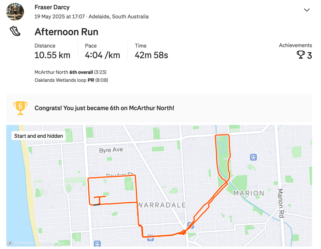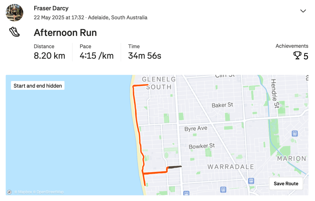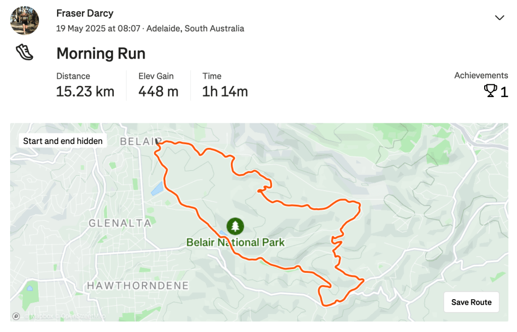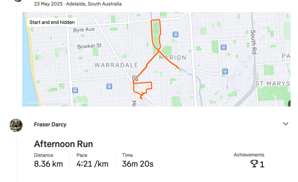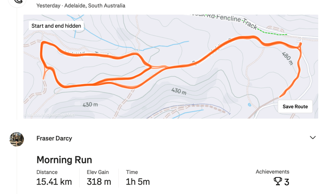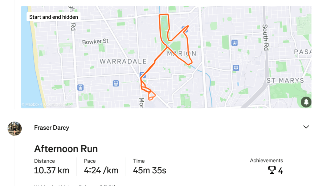 The first routine I changed this week was waking up in North Brighton on Monday morning, not Eden Hills. I usually run in Belair on Monday’s and to travel from North Brighton up the hill to Belair was going to be a pain at 9am so I got out there early. Lo and behold the universe appreciated that move and in the carpark at Belair I bumped into Rob Stillwell. It’s been a while since I’ve seen Rob but he was… still… well. After chatting with Rob I went for a run feeling much better than I did this time one week ago. I had a bit more pep in my step and ran my old 15km loop in Belair finishing pretty strong but not getting too carried away. Usually on Monday’s I follow this run up with some mobility but given I had a busy day on the cards that mobility session got pushed back. I headed back down the hill towards North Brighton with the ambition of plugging in the nbn box for the first time in Alice’s house. You see, the old owner mistakenly took the nbn box with them so even though we had a modem we had no internet across the weekend, *puts pirate voice on*, in the dark ages we were…